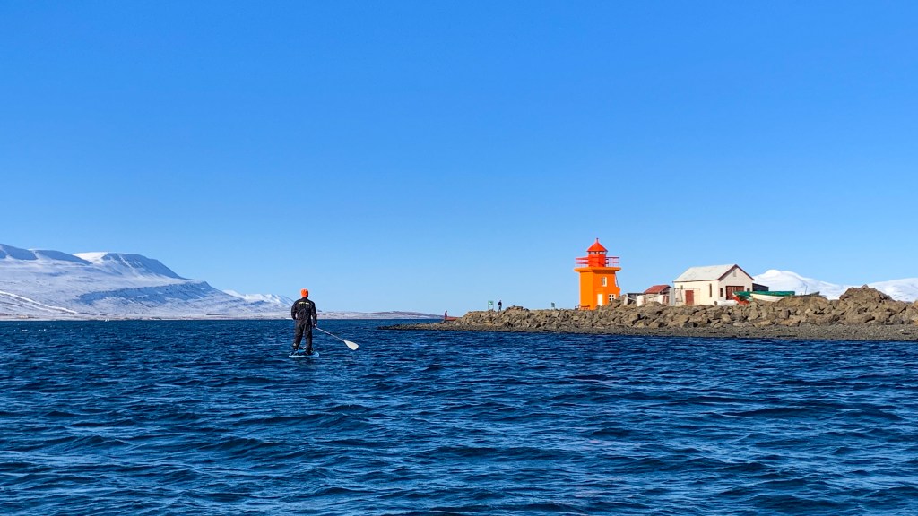 We passed a shipwreck, ocean view villas and farms and met a lot of birds on the way. There were no whales or seals in our path this time, but we did see a whale watching boat head out the fjord and knew about a herd of seals at the bottom of the fjord. The trip ended by the lighthouse at Svalbarðseyri. This will be the third time I paddle this route and it did not disappoint. This trip filled us with energy and joy that will, with out a doubt, get us trough the stormy days ahead.