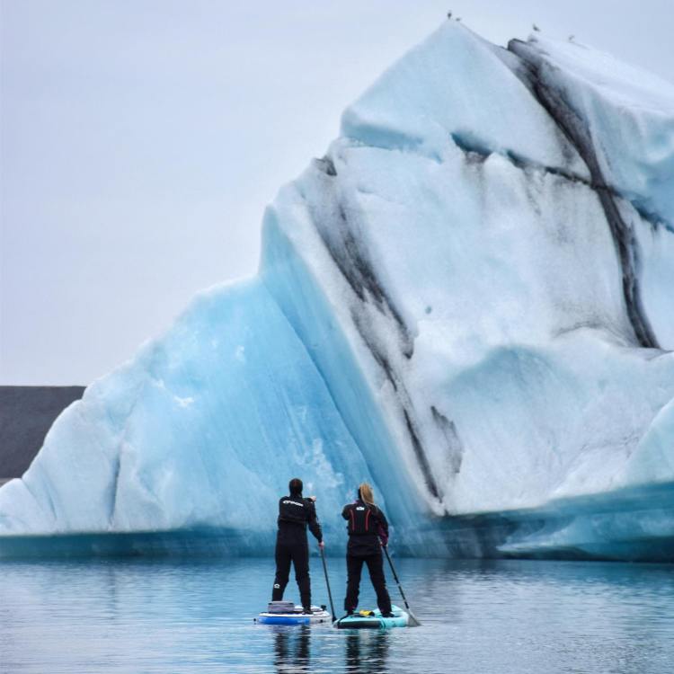 This is not a “lay on your board in a bikini” kind of country. With the average sea temperature ranging between 2.3°C to 10°c / 36.1°F to 50°F. You usually find Icelandic paddle boarders wearing drysuits year round and layering up underneath depending on how cold the sea will be. You might also see some wearing full body wetsuits, but they are more common with surfers.